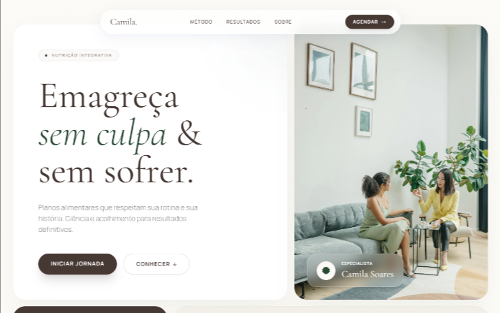 Nada de modelos prontos — cada projeto é único para transmitir a identidade da sua marca.